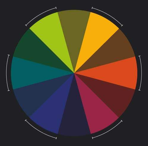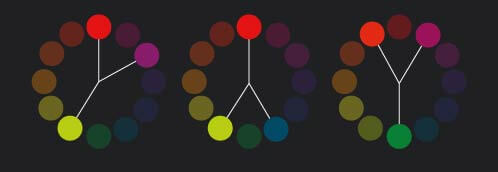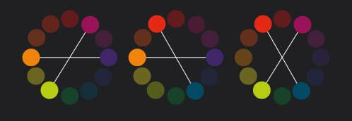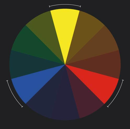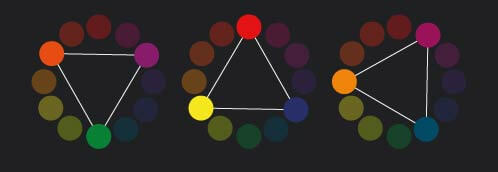 Esta se crea seleccionando 3 colores que formen 120° entre uno y el otro, en relación al centro del círculo cromático.
